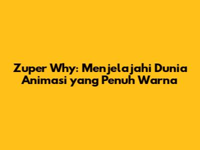 Zuper Why, serial animasi yang memukau anak-anak, telah berhasil mencuri hati jutaan penonton di seluruh dunia. Bagi kalian yang belum familiar, serial ini lebih dari sekadar tontonan biasa. Zuper Why adalah sebuah petualangan edukatif yang dirancang untuk menginspirasi anak-anak, mendorong mereka untuk berpikir kreatif, dan mengembangkan kemampuan membaca serta memecahkan masalah. Dalam artikel ini, kita akan menyelami lebih dalam dunia Zuper Why, membahas karakter-karakter yang menggemaskan, tema-tema yang diangkat, dan mengapa serial ini menjadi pilihan utama bagi banyak keluarga.